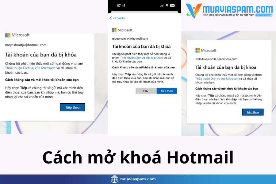 Nếu hotmail bị khoá thuê sđt mở khoá tại : https://viotp.com/Account/Register?referCode=66473