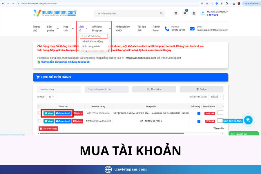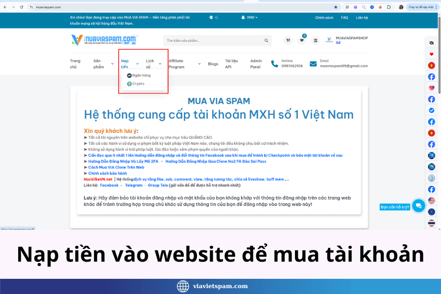 Hiện nay, có rất nhiều anh em cần mua VIA để chạy quảng cáo, seeding, hay nhu cầu khác. Tuy nhiên lại không biết cách để mua sao cho nhanh và tiện lợi nhất. Hôm nay Mua VIA Spam xin phép được chia sẻ cách để có thể giao dịch hoàn toàn tự động trong 1 phút. Vô cùng tiện lợi và an toàn tại web bán tài nguyên: Muaviaspam.com