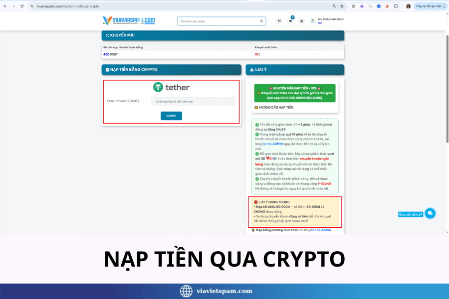 Cách 2:NẠP TIỀN QUA CRYPTO USDT